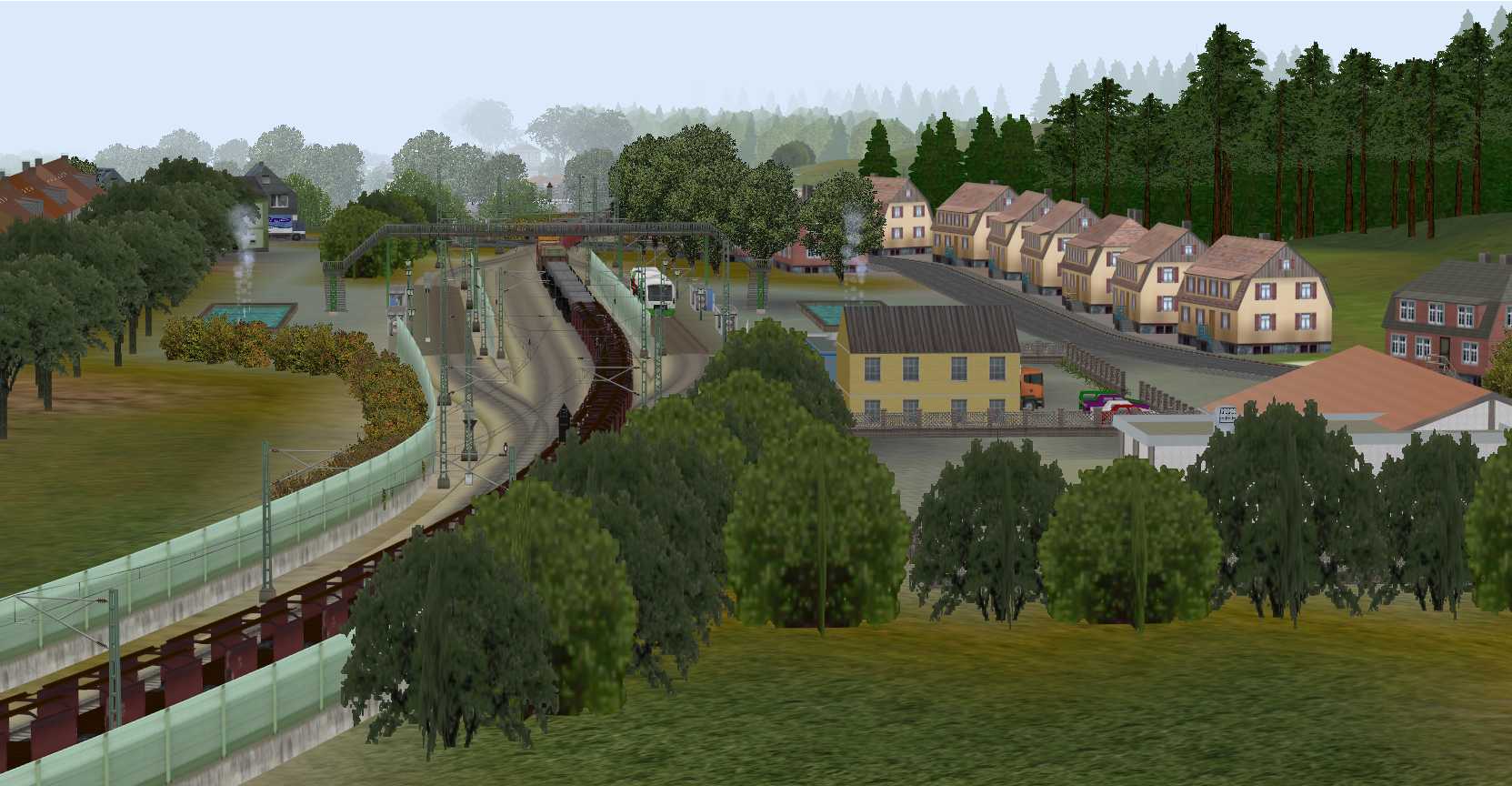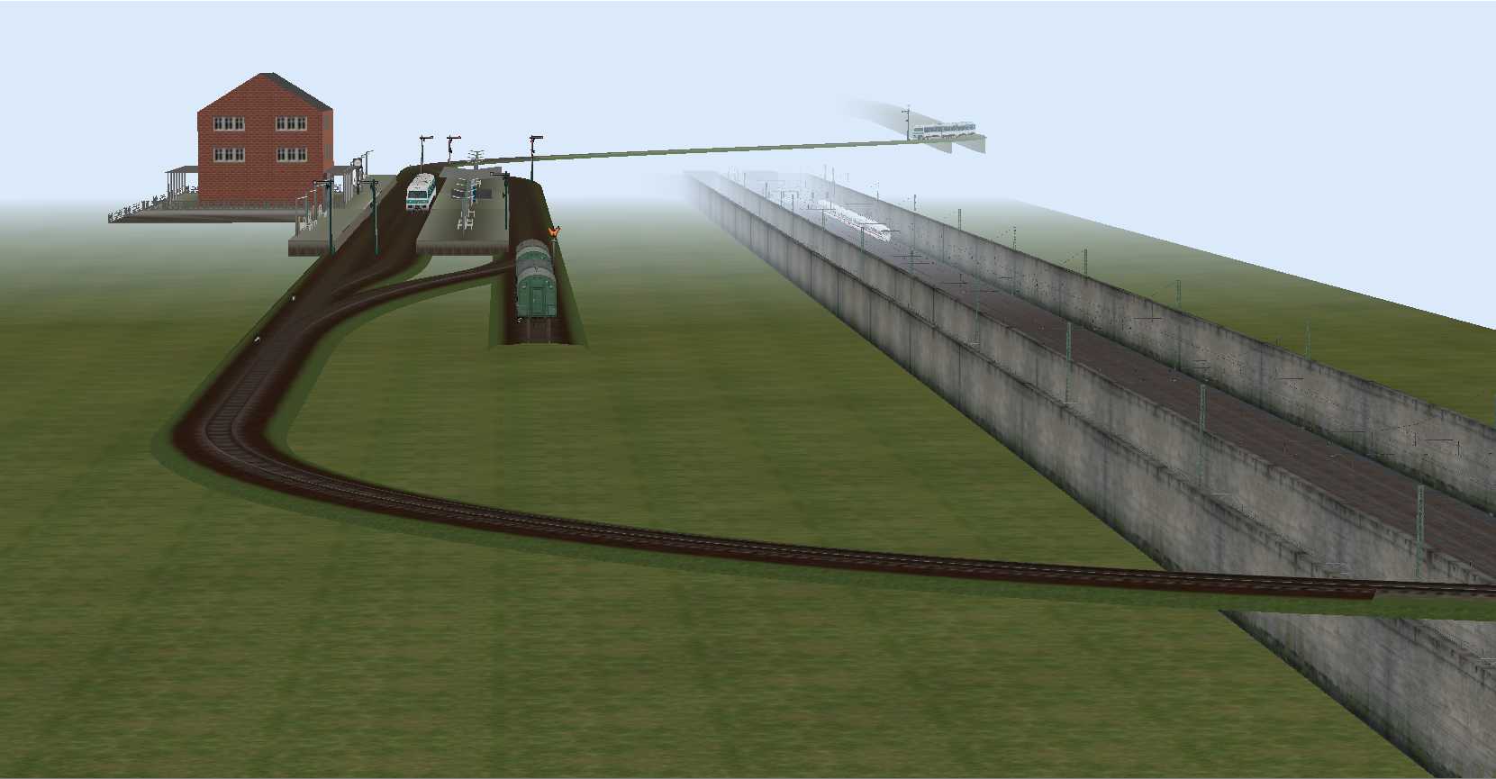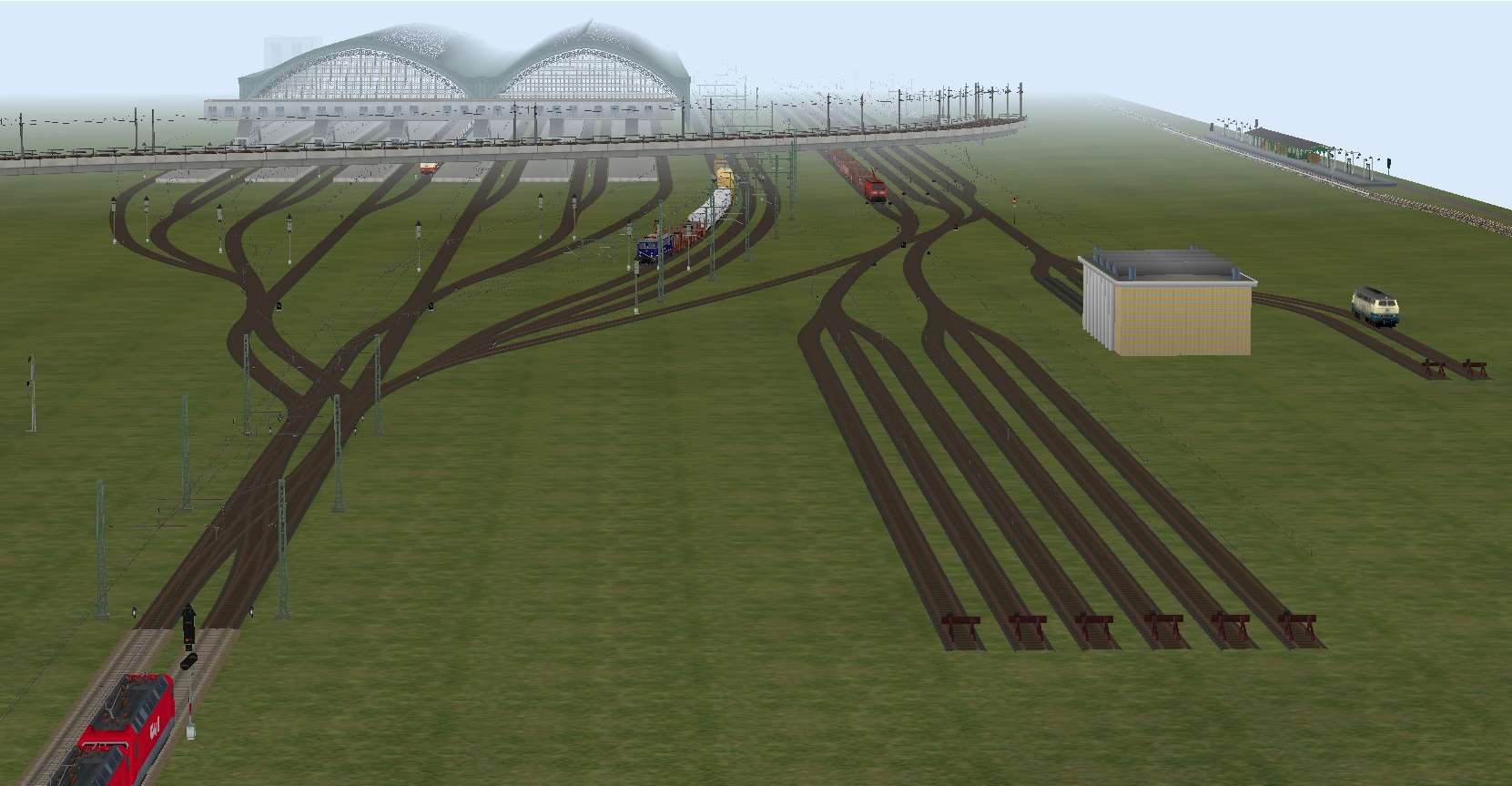 Zu dem Hauptbahnhof gehören noch 3 Gleise für die Umfahrung der Bahnsteige durch Güterzüge und ein kleinerer Rangierbereich.