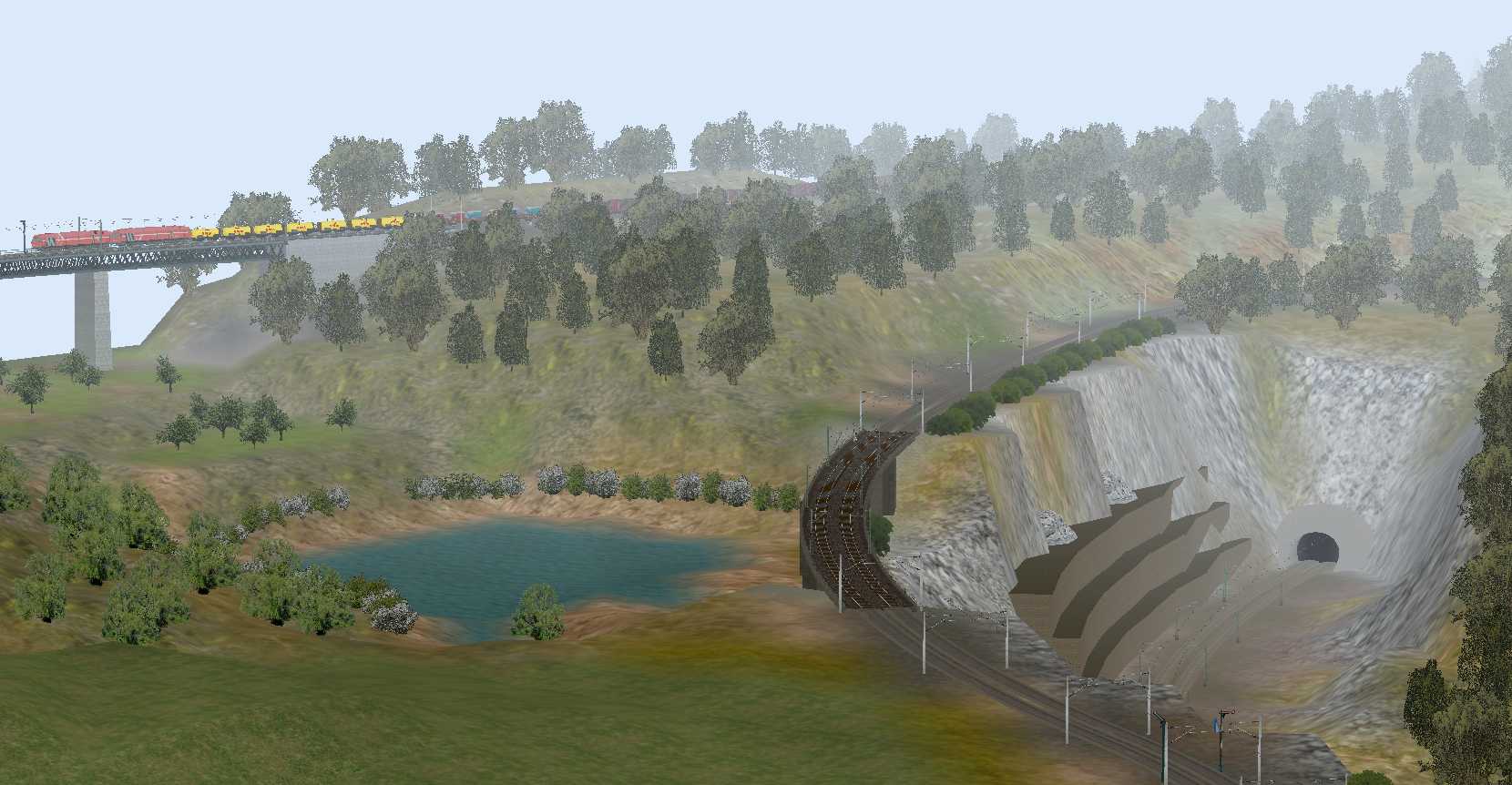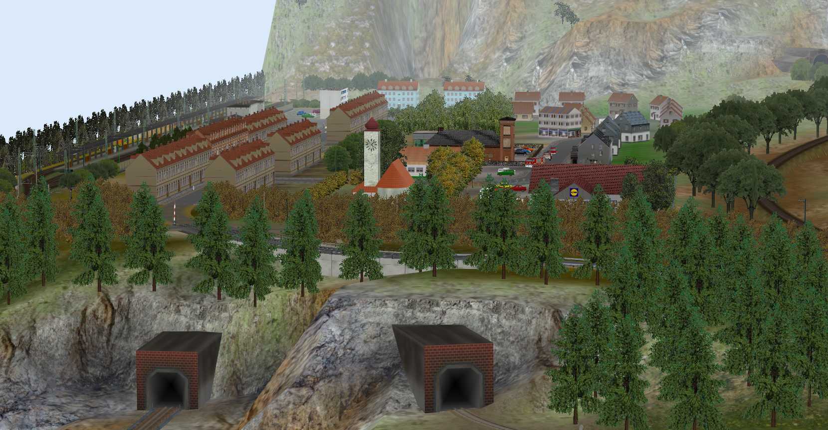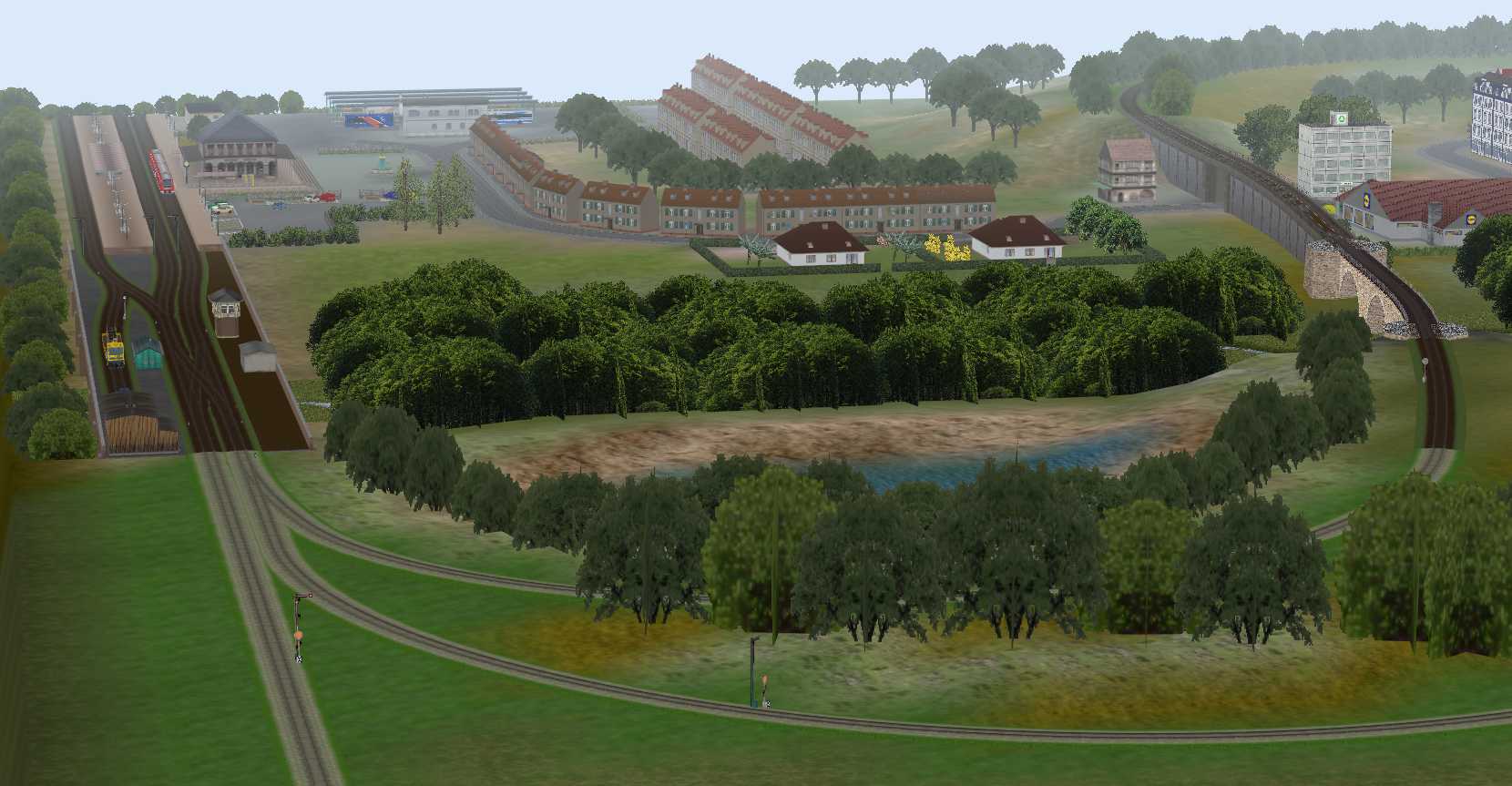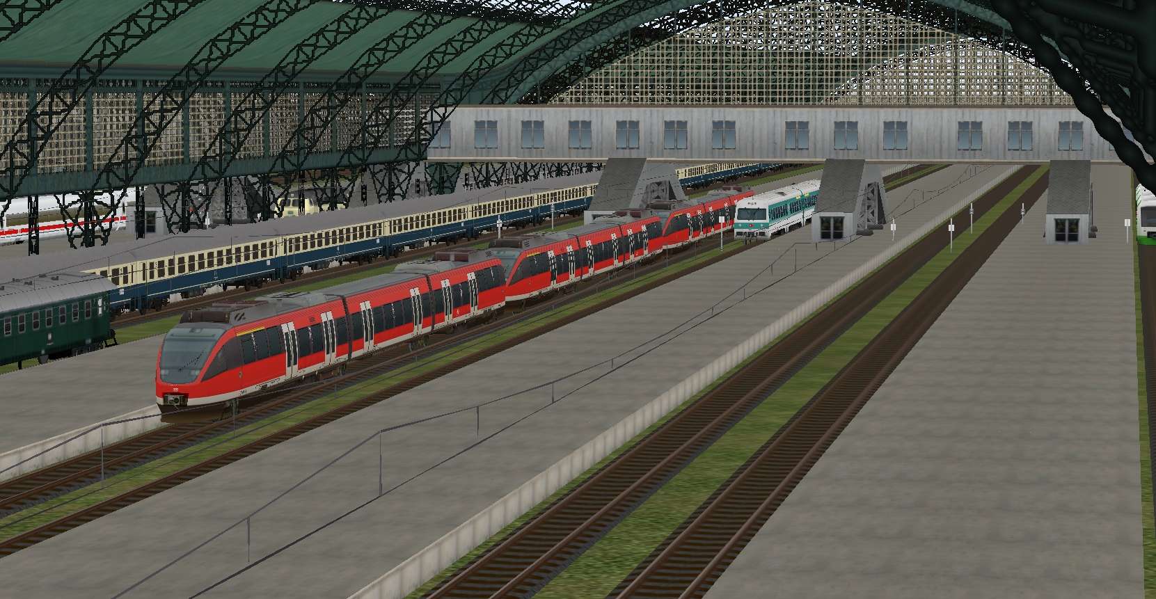 Zu dem Hauptbahnhof gehören noch 3 Gleise für die Umfahrung der Bahnsteige durch Güterzüge und ein kleinerer Rangierbereich.