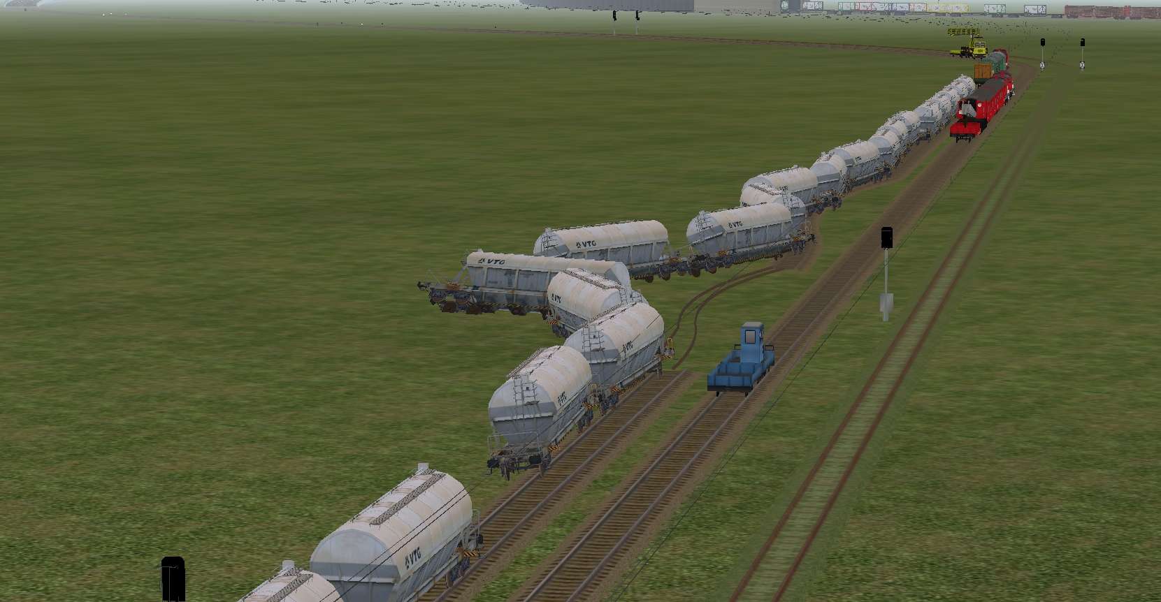 Die speziell bezeichneten Loks "finden" ihre Industrie-/Kasernen-Gleisanschlüsse und transportieren Güter