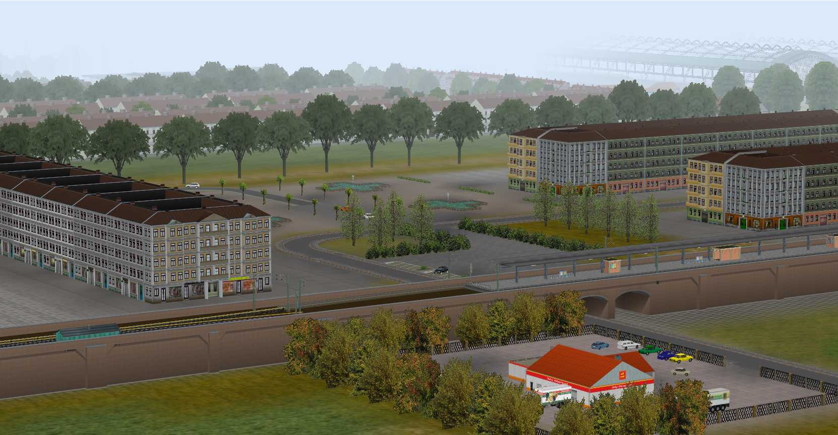 Bei dieser, auch wieder, reinen Phantasieanlage steht im Mittelpunkt ein 12gleisiger Hauptbahnhof.