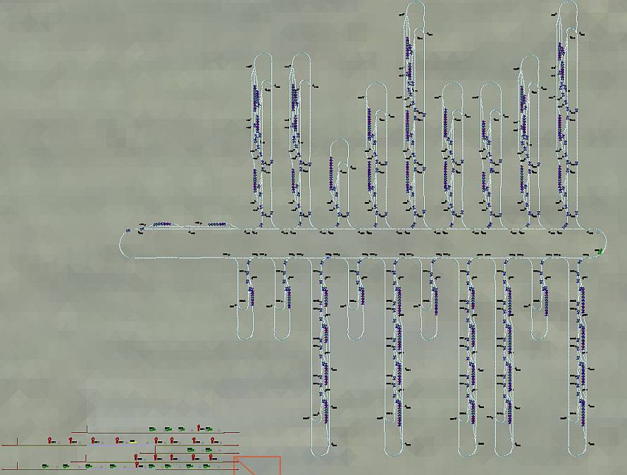 Die Hauptstrecke endet an beiden Enden jeweils in einem 3gleisigen Schattenbahnhof.