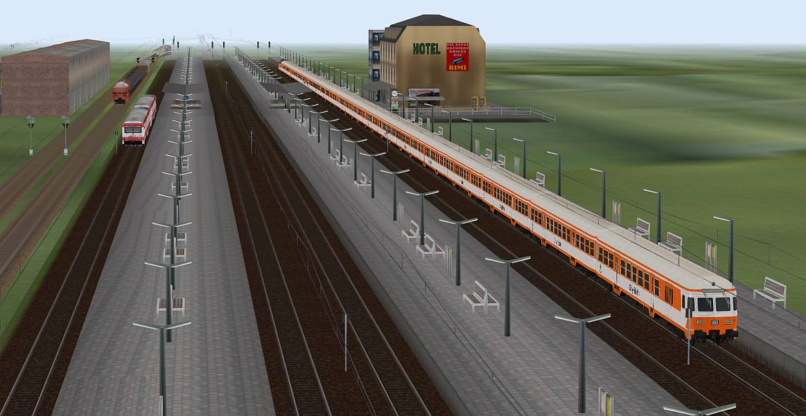Erstmal verwende ich für den Wendezugbetrieb wieder das Standard-EEP-Verfahren. Ich lasse diesmal die Züge mit höherer Geschwindigkeit in den Signalbereich